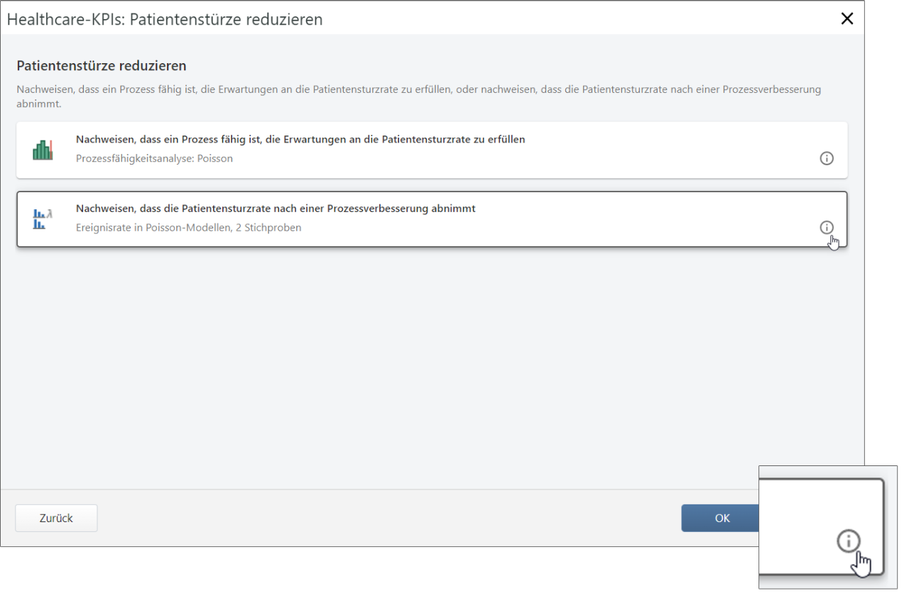 Das Healthcare-Modul von Minitab ist speziell für das Gesundheitswesen konzipiert und bietet angeleitete Datenanalysen in vertrauter und gut verständlicher Fachsprache. So können Sie sich darauf konzentrieren, wichtige Leistungskennzahlen (KPIs) wie Wartezeiten, Kosten, Auslastung, Patientensicherheit und Patientenzufriedenheit zu verbessern, ohne lange überlegen zu müssen, welche Analyse Sie verwenden sollten.