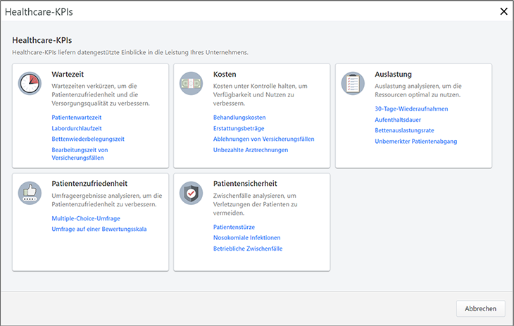 Die folgenden Funktionen und Tools sind leicht im Healthcare-Modul zu finden.