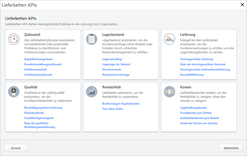 Diagramm mit den verfügbaren Lieferketten-KPIs