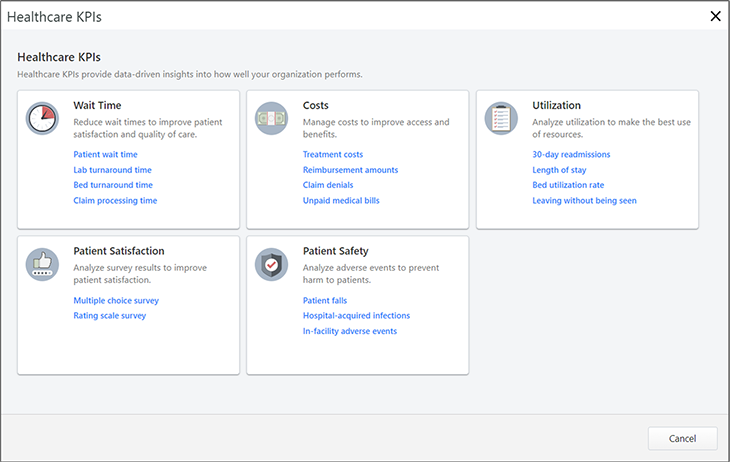 Written with healthcare professionals in mind, Minitab's Healthcare Module provides guided data analysis in commonly-used and understood healthcare terms. Shift your focus to improving key performance indicators (KPIs) like wait time, costs, utilization, patient safety, and patient satisfaction without worrying about which analysis to use.