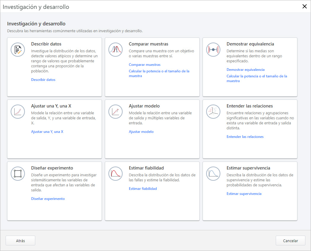 El Módulo de Investigación y Desarrollo de Minitab ofrece una solución perfecta para mejorar el proceso de toma de decisiones basado en información. Con la interfaz intuitiva y el conjunto completo de herramientas, este módulo permite a los profesionales del campo de I+D ahondar más en el análisis de datos complejos ya que les brinda las mejores herramientas.