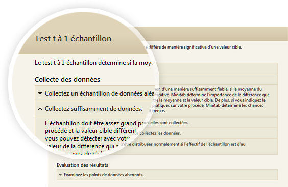Nul besoin d'être expert en statistiques pour obtenir la visibilité dont vous avez besoin. L'Assistant de Minitab vous guide à chaque étape de votre analyse et vous aide même à interpréter vos résultats.