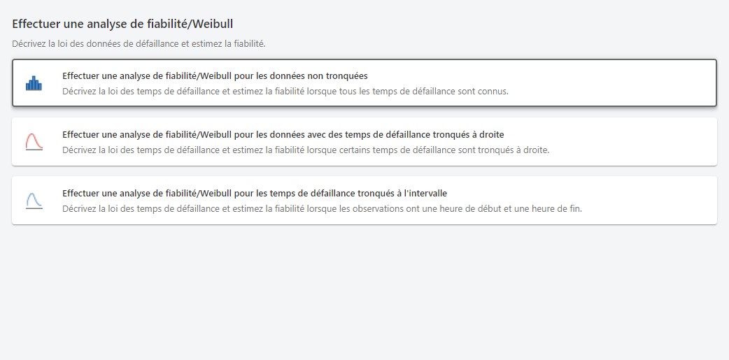 Le Module de fiabilité de Minitab propose une solution hors norme au soutien de votre processus décisionnel reposant sur l’exploitation de données. Doté d’une interface intuitive et d’une gamme extensive d’outils, ce module permet aux ingénieurs en fiabilité d’étudier en toute facilité des analyses de données complexes. En exploitant des ressources de pointe, le Module de fiabilité de Minitab communique sans difficulté des calculs complexes pour bénéficier d’informations précises et prendre des décisions éclairées.