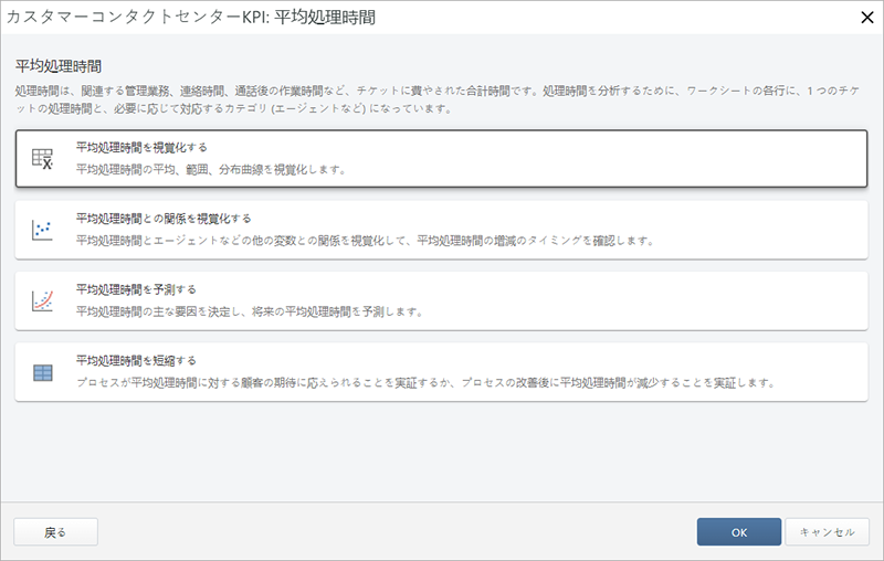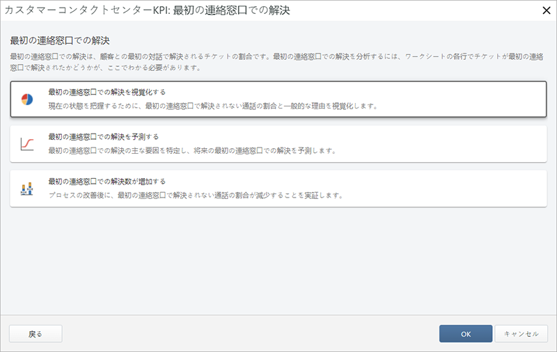 顧客対応の専門家を念頭に作成されたMinitabの顧客対応窓口モジュールは、よく使われていて分かりやすい用語からなるガイド付きのデータ分析を提供します。どの分析手法を使用するか煩わされることなく、サービスレベルや使用率とコスト、チケット数量、時間管理、チケット解決、顧客満足度などの主要業績評価指標(KPI)の改善に注目することができます。